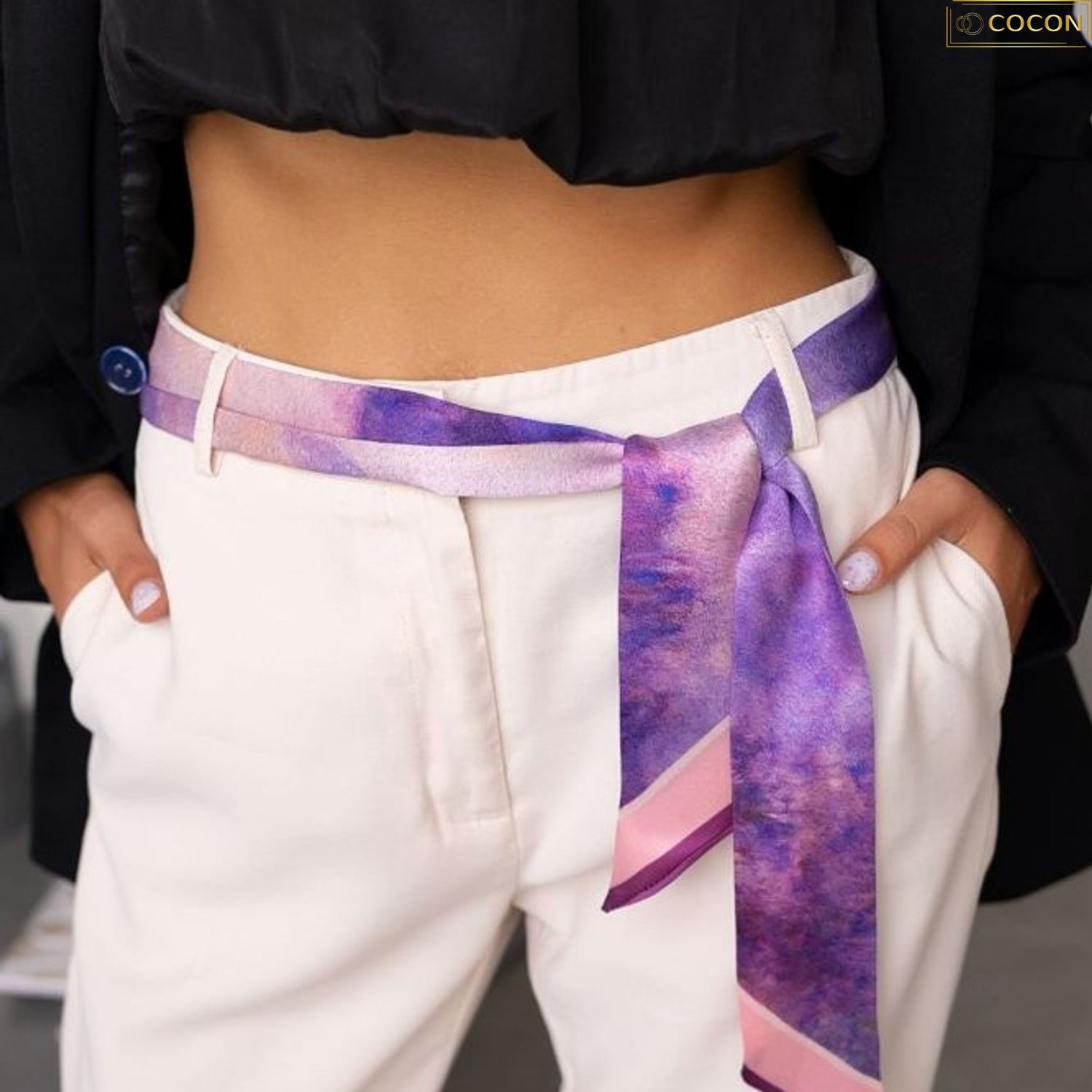 This art ribbon translates the gentle rhythm of Monet’s Foggy Morning on the Seine into an elegant, elongated design. Monet captured the way mist softens the river’s surface and blurs the horizon into pure atmosphere. The linear form reflects the quiet flow of dawn light over water. A versatile accessory that brings understated Impressionist serenity to any look.